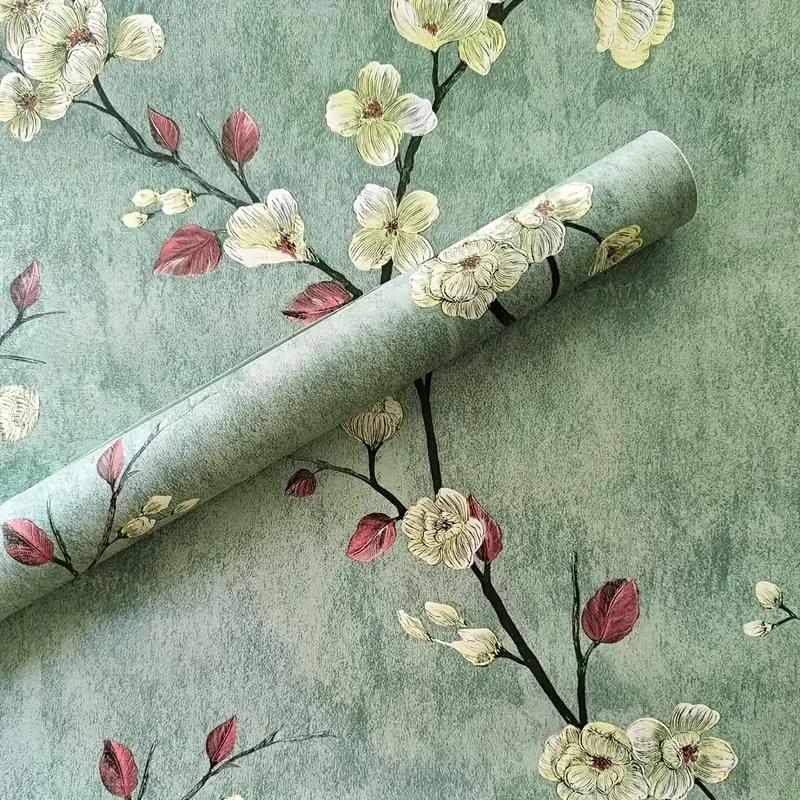 Ретро Обои Цветок Сливы Зеленый Самоклеящиеся Обои Водонепроницаемые Съемные Контактная Бумага Декор для Гостиной Спальни 10mx45cm