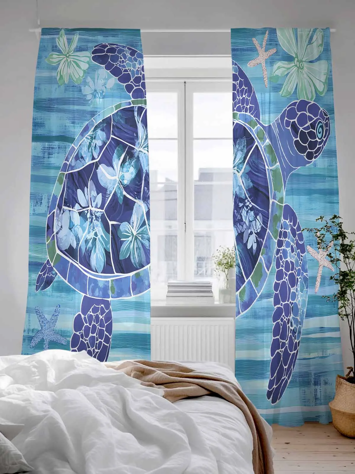 Ретро Океан Синяя Черепаха Тюлевые Прозрачные Шторы для Гостиной Спальня Кухня Украшения Вуаль Шторы Из Органзы