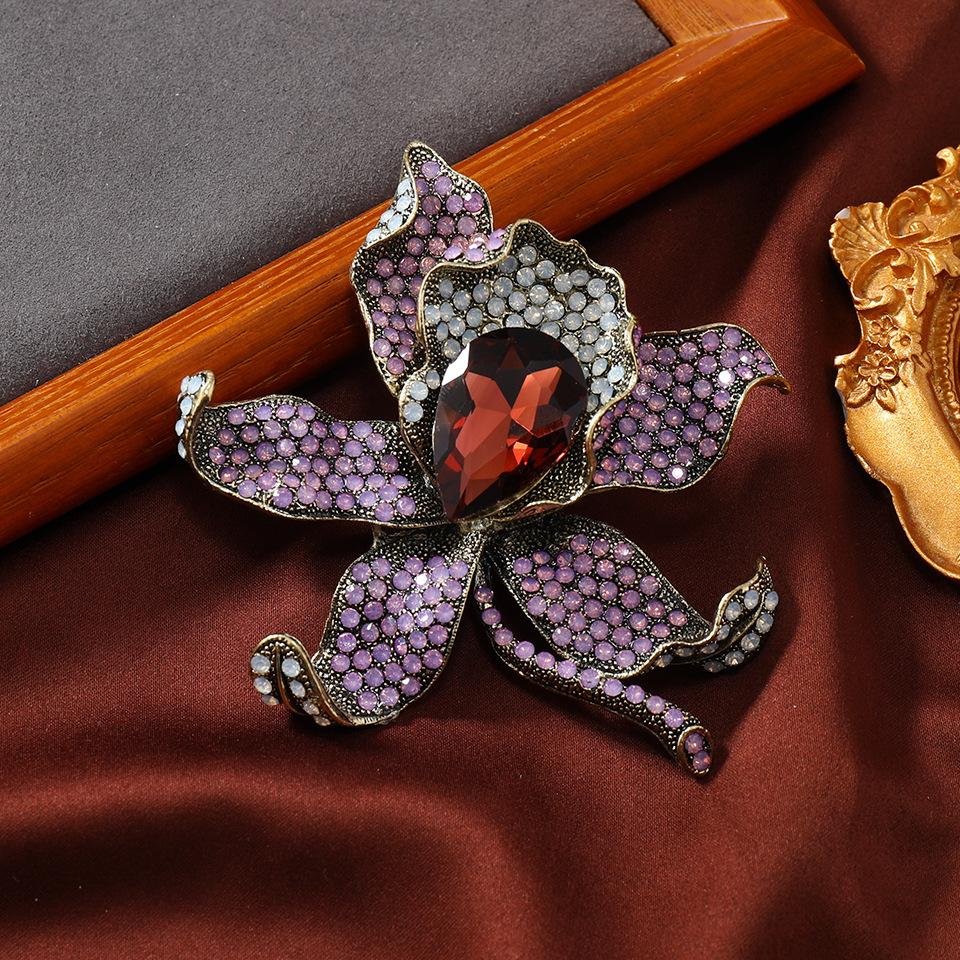 Ретро Роскошь Полный Кристалл Большой Размер Брошь Элегантный Великолепный Растительный Серии Блейзер Одежда фиолетовый
