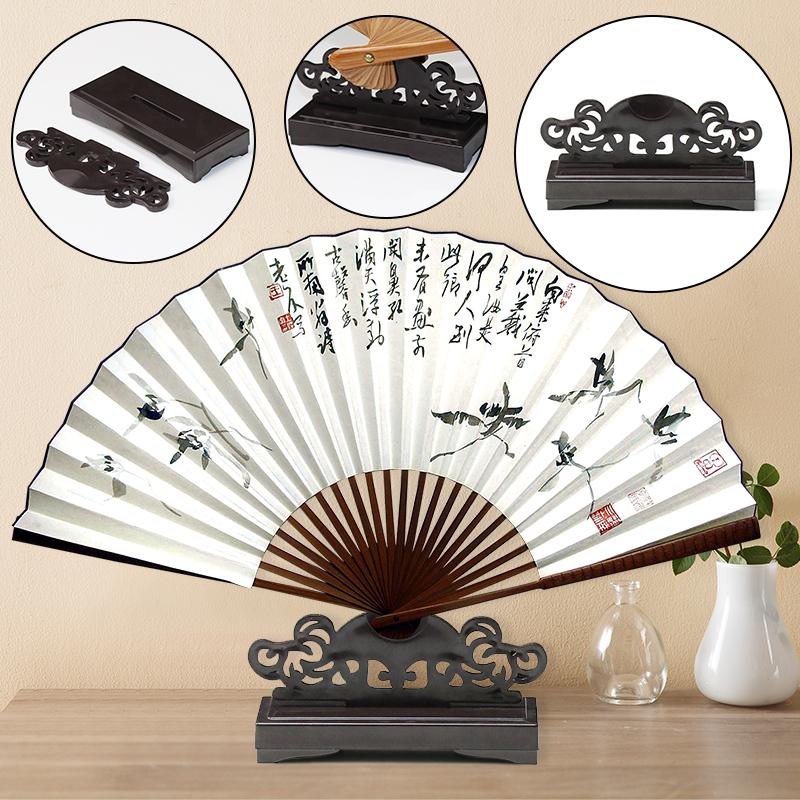 Ретро Съемный Складной Ручной Вентилятор База Китайский Стиль Домашний Офис Настольный Дисплей Стенд