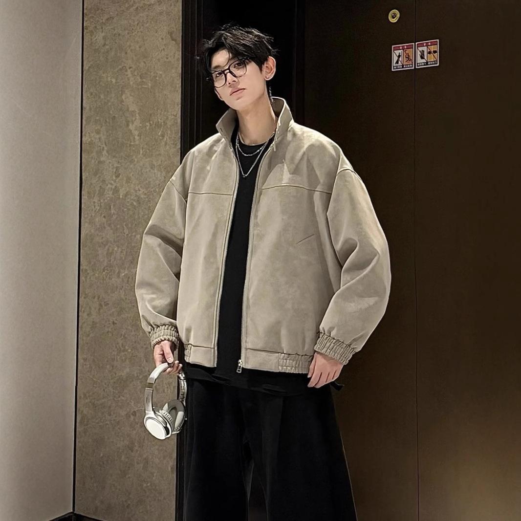 Ретро Тай-Дай Куртка из ПУ кожи со стойкой - Универсальная верхняя одежда в панк-стиле M серый