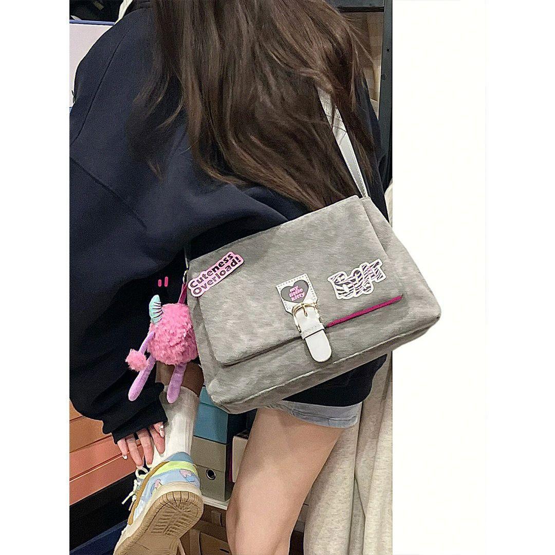 Ретро Темперамент Замшевая Одно Плечо Сумка Почтальона Женская Легкая Роскошная Текстура Универсальный Нишевый Дизайн серый