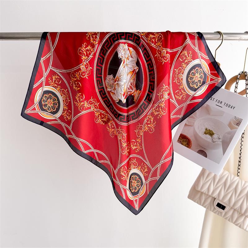Ретро Тотемный Принт Шелковый Платок Квадратный Платок Высококлассная Шаль Универсальный Шейный Маленький Квадратный Платок Головной Платок Unilateral 66-70CM