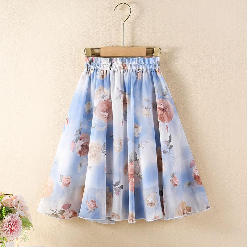 Ретро Универсальная Юбка Миди Летняя Новая Мода Шифоновая Юбка Большой Клеш Юбка-Зонт Длина до Колена Средняя Длина 140
