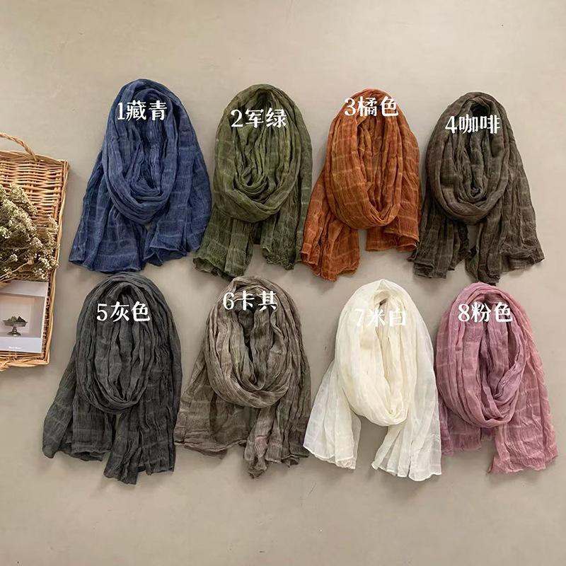 Ретро Хлопково-льняной Шарф Женский Однотонный Клетчатый Платок Шелковый Шарф Теплый Шарф 190*80cm бежевый