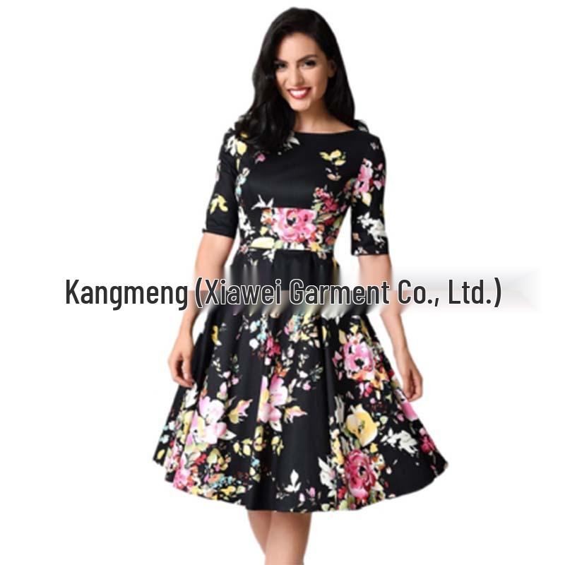 Ретро Цветочный Платье с Пышной Юбкой и Высокой Талией для Мам Плюс Сайз International 2XL