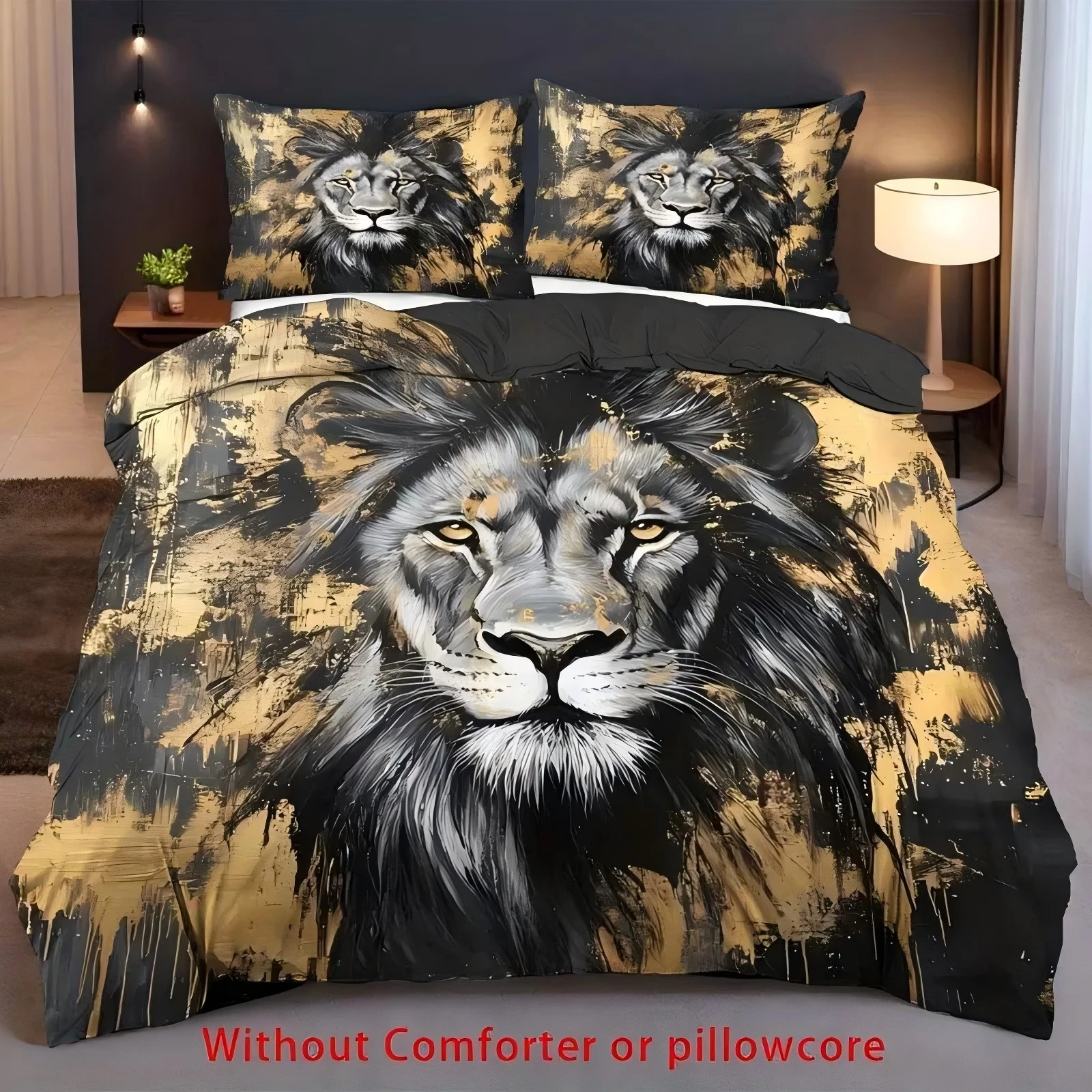 Ретро Черное Золото Лев 3D Печатный Комплект Пододеяльников Домашний Текстиль Комплект Постельного Белья Лев Дикая Природа Тема Стиль Пидодеяль Комплект Наволочек