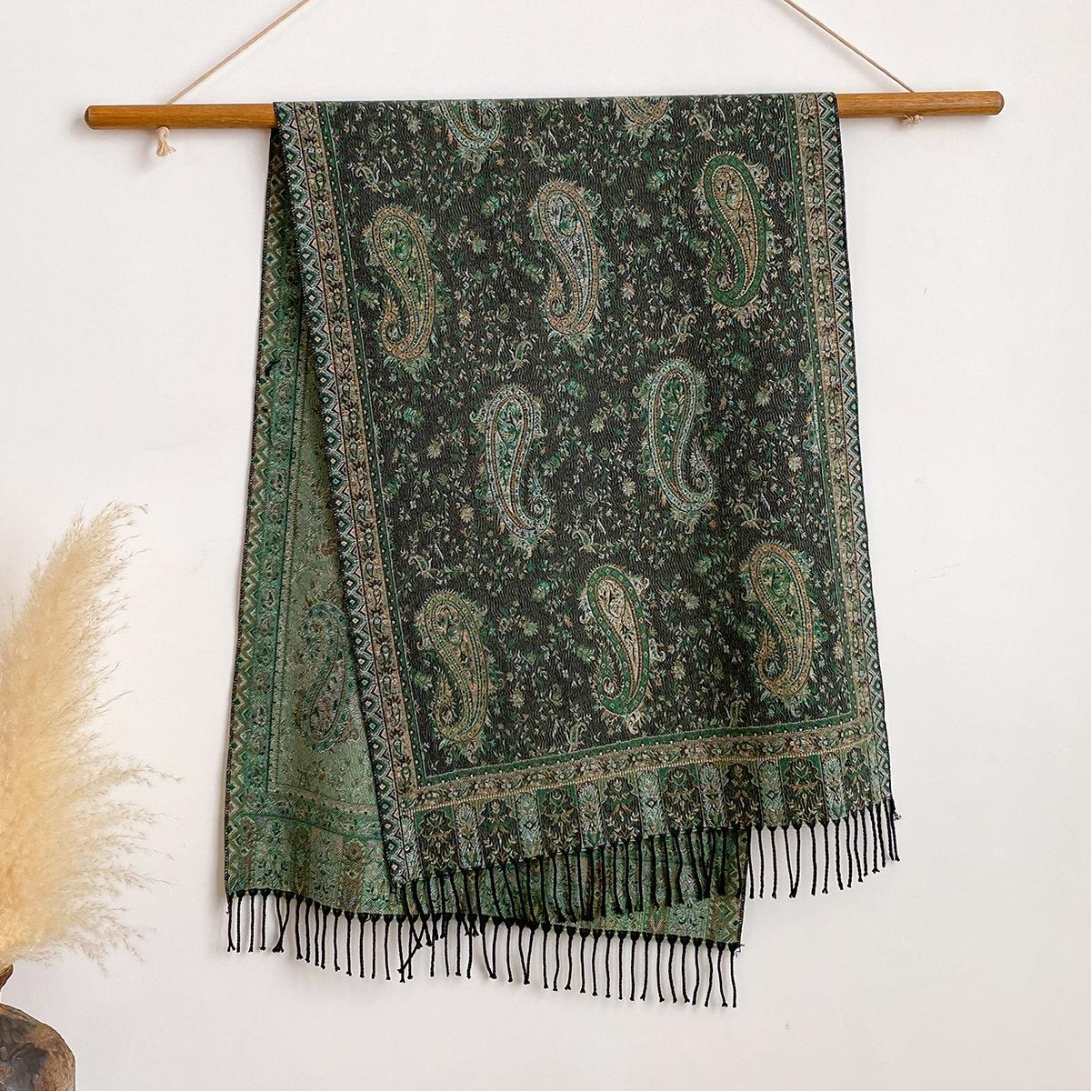 Ретро Этнический Стиль Популярная Высококлассная Атмосфера Жаккардовая Шаль-Шарф Кашемировый Универсальный 200x65cm зелёный