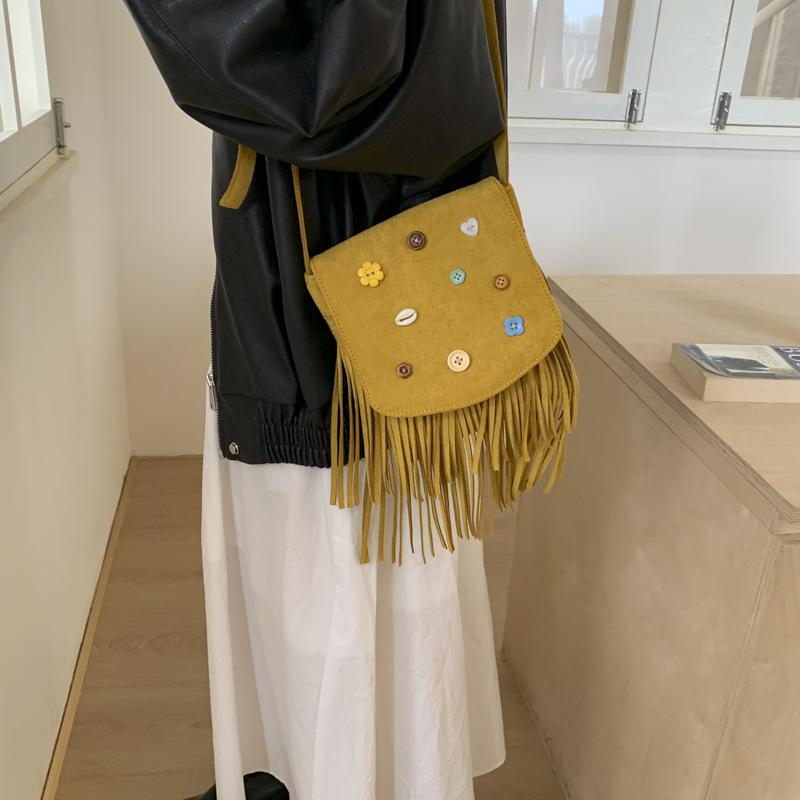 Ретро богемная сумка женская новая осенне-зимняя модная на плечо, сумка-мессенджер, повседневная сумка с бахромой жёлтый