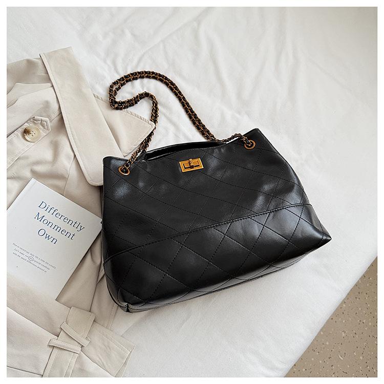 Ретро вместительная сумка-тоут для поездок на работу, женская новая сумка-мессенджер, маленькая сумка на плечо под мышкой из ромбовидной замши в стиле маленького ароматного ветра чёрный