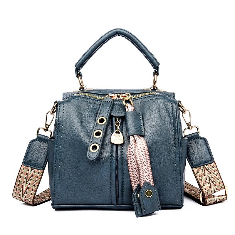 Ретро женская сумка из мягкой кожи, сумка для мамы среднего возраста, новая простая многосекционная сумка-мессенджер через плечо большой вместимости синий