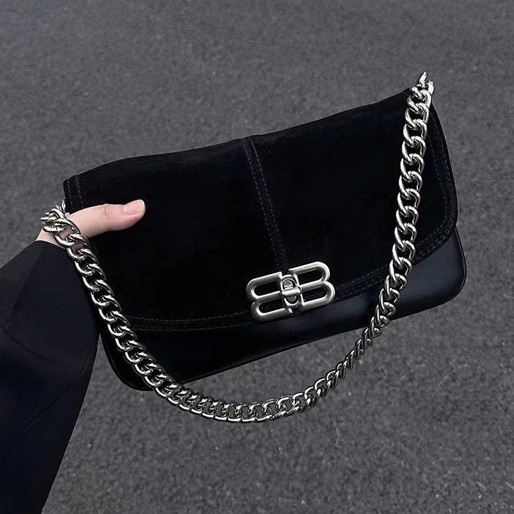 Ретро замшевая сумка-клатч на цепочке, маленькая квадратная, осенняя новинка, сумка под мышку, высококлассная, на одно плечо, сумка под мышку
