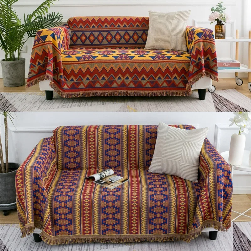 Ретро клетчатое зимнее хлопковое льняное тканое одеяло, диванное полотенце, вязаный утолщенный теплый коврик, богемный плед в стиле бохо, дорожное покрывало