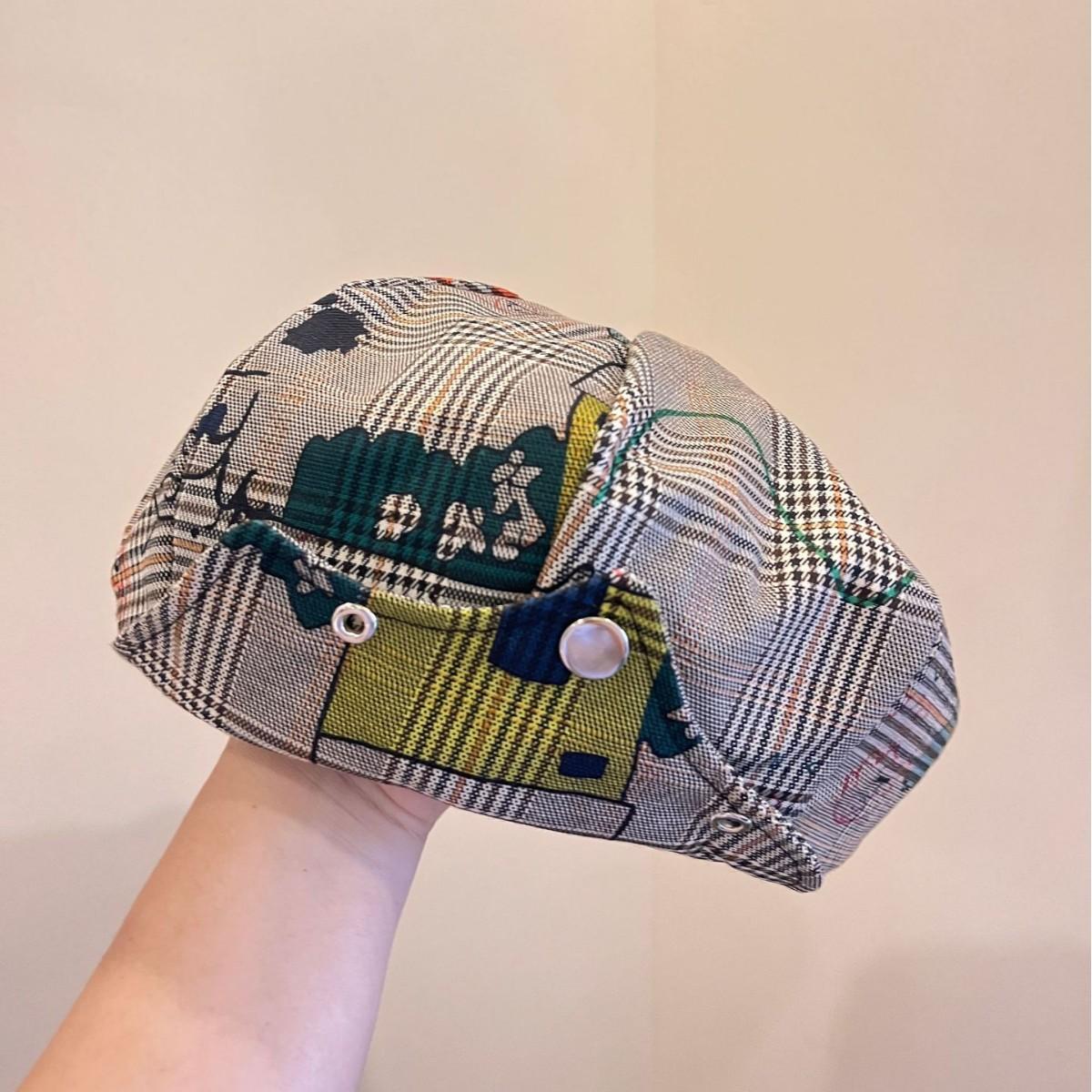 Ретро клетчатый берет женский весенний тонкий художник темперамент модель показывает лицо маленькая мода универсальная шляпа прилив M(56-58cm) серый