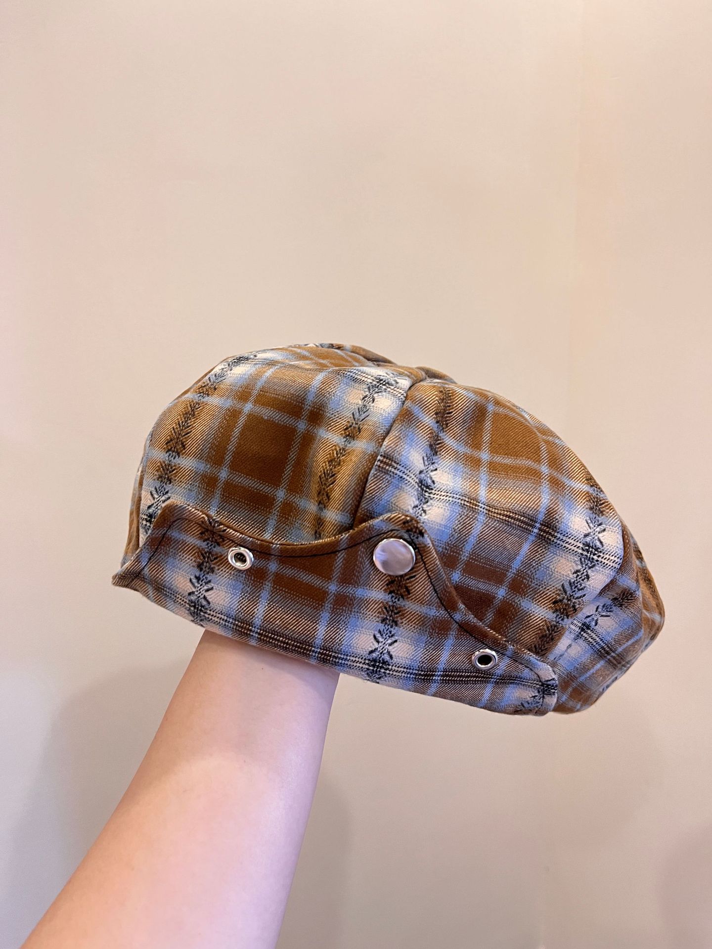 Ретро клетчатый берет женский весенний тонкий художник темперамент модель показывает лицо маленькая мода универсальная шляпа прилив M(56-58cm) хаки