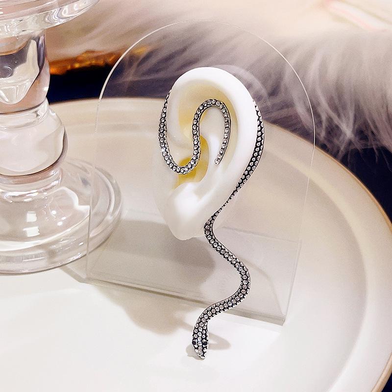 Ретро-клипсы для ушей с бриллиантами в форме змеи, темные серьги в стиле панк без проколов для женщин