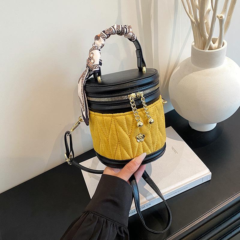 Ретро контрастная сумка осень и зима новая универсальная женская сумка-мессенджер нишевая сумка-цилиндр жёлтый