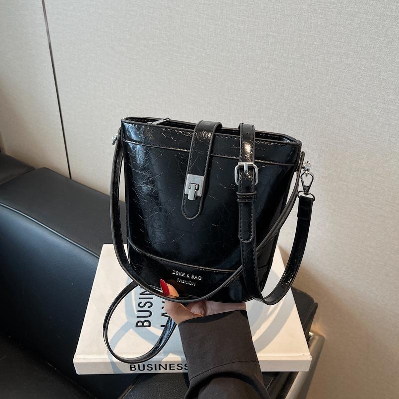 Ретро легкая роскошная сумка-ведро модный темперамент замок женская сумка для通勤 на плечо сумка-мессенджер 19*10*18 чёрный