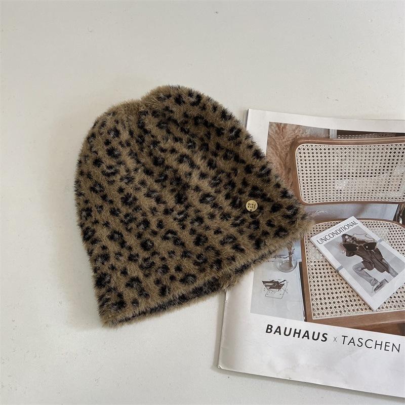 Ретро леопардовый плюшевый пуловер шляпа женская новая осень и зима большой обхват головы шляпа-ведро показывает маленькое лицо M(56-58cm)