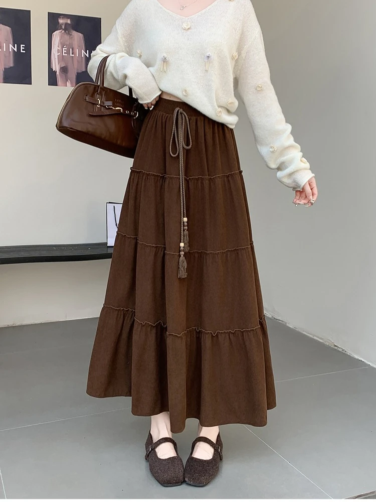 Ретро лоскутная большая распашная длинная юбка для женщин, осень 202, эластичная талия, утягивающая юбка-торт, женская элегантная черная юбка трапециевидной формы, новинка