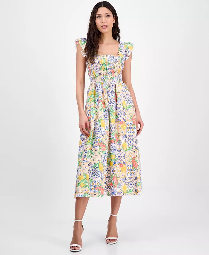 Женское хлопковое миди-платье без рукавов с принтом Anne Klein, мультиколор