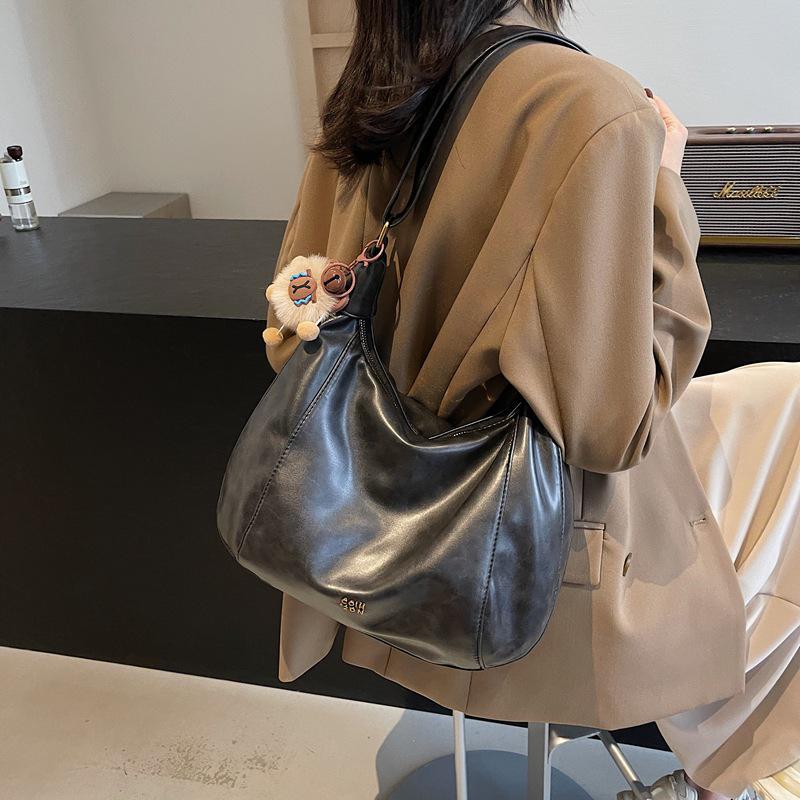 Ретро-мешок для пельменей в корейском стиле: Большая вместимость, модная, высококачественная сумка через плечо с текстурой для женщин (2025) чёрный