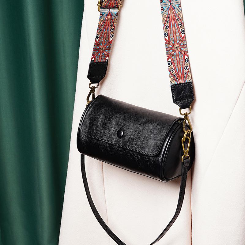 Ретро и модная одноплечевая сумка кроссбоди из кожи, цилиндрическая сумка из кожи верхнего слоя цвета древесного угля