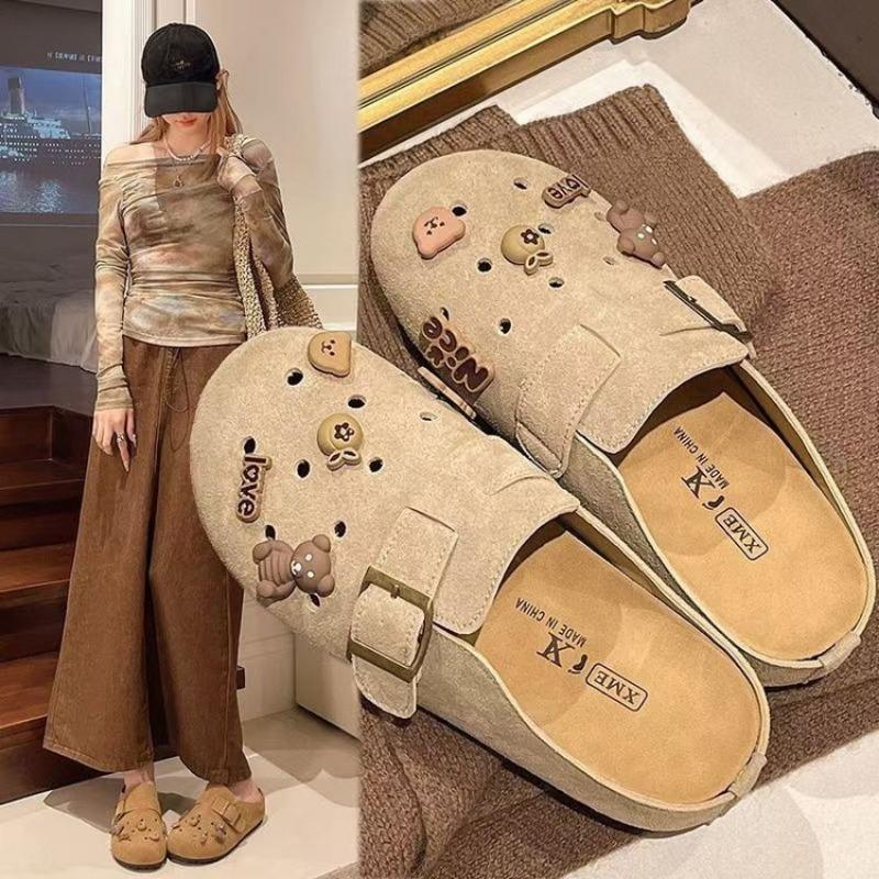 Ретро мультяшные милые туфли на толстой подошве для улицы весна-лето новые повседневные шлепанцы с отверстиями для педалей 38