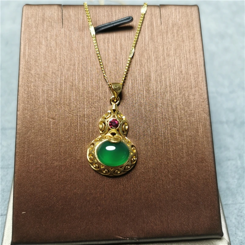 Ретро натуральный зеленый нефрит изумрудные геометрические Кулоны Ожерелья женские настоящие 925 серебряные цепочки длинное ожерелье ювел...