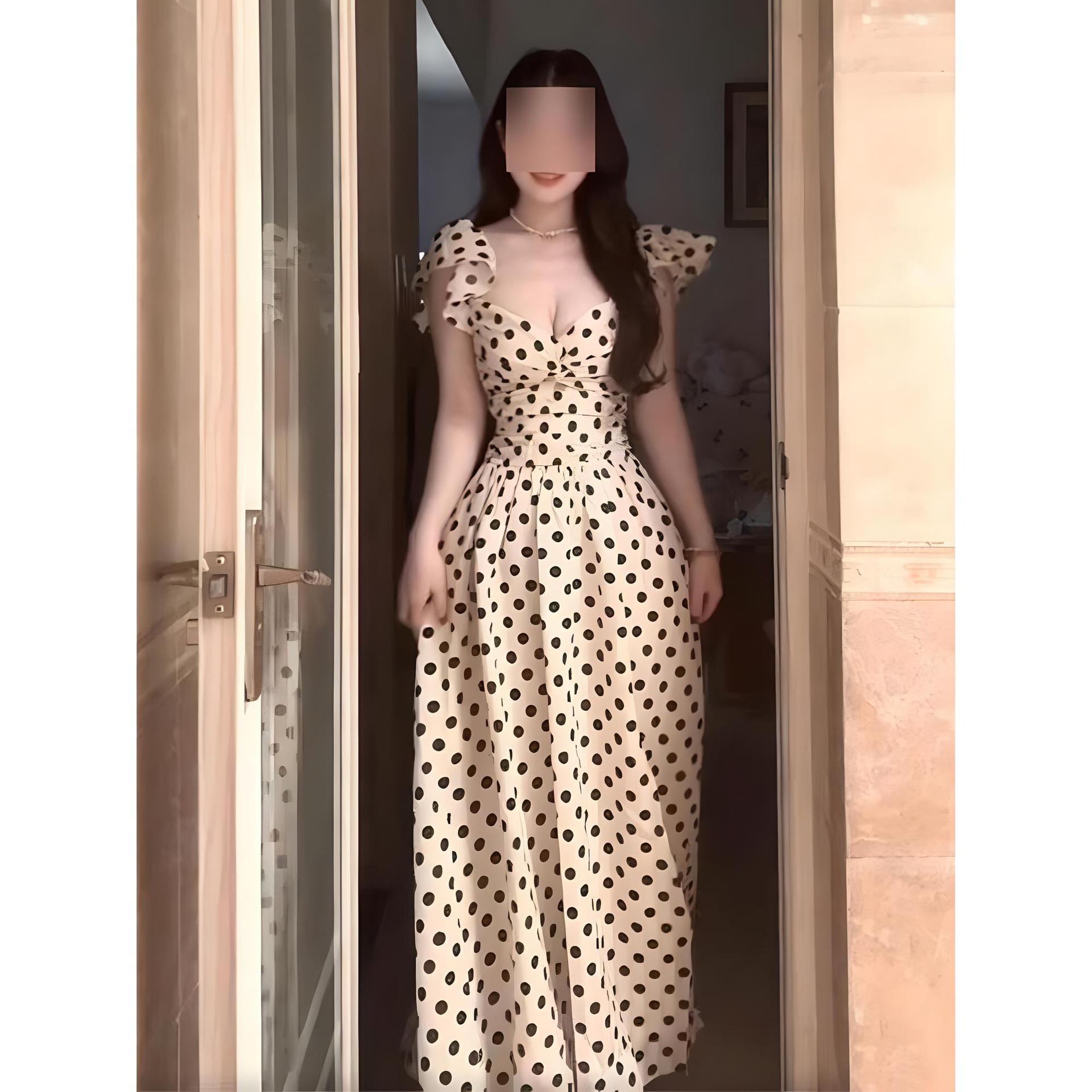 Ретро нежный темперамент черно-белый горошек платье с маленькими рукавами-фонариками праздничный стиль супер красивое уникальное красивое платье S- (can be worn within 45kg)