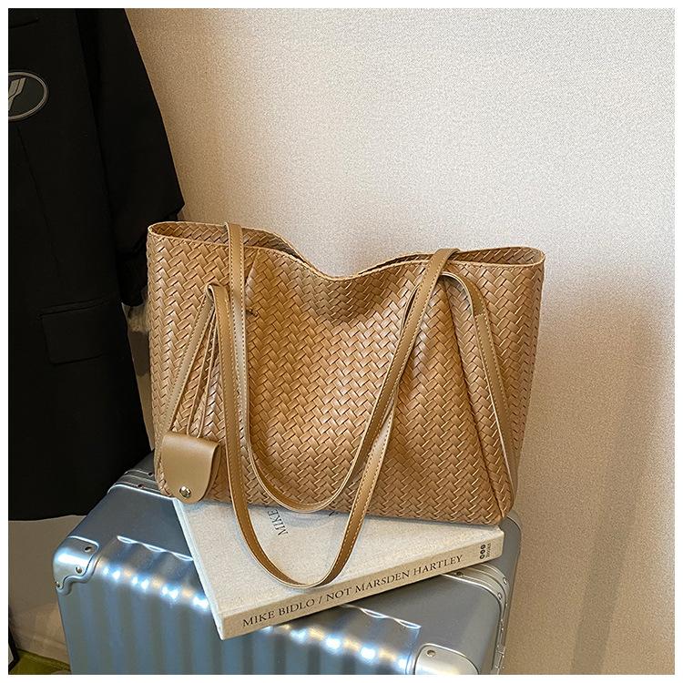 Ретро плетеная сумка женская большой вместимости новая осенне-зимняя универсальная повседневная сумка через плечо для работы хаки