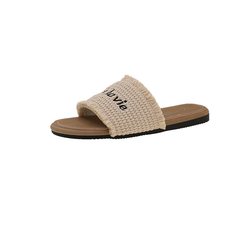Ретро плетеные однословные шлепанцы женская летняя одежда новые отпускные ленивые на плоской подошве с юбкой пляжные сандалии 40