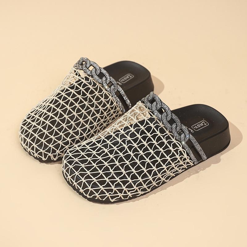 Ретро плетёная рыболовная сеть крутые тапочки женская уличная обувь 2025 лето новинка стразы толстая подошва с перемычкой с закрытым носком полутапочки 40 бежевый