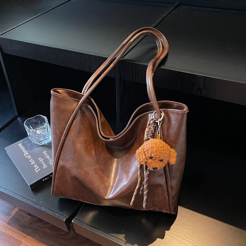 Ретро популярная сумка-тоут большой вместимости женская 2025 новая простая сумка через плечо для通勤 премиального ощущения сумка подмышку no pendant коричневый