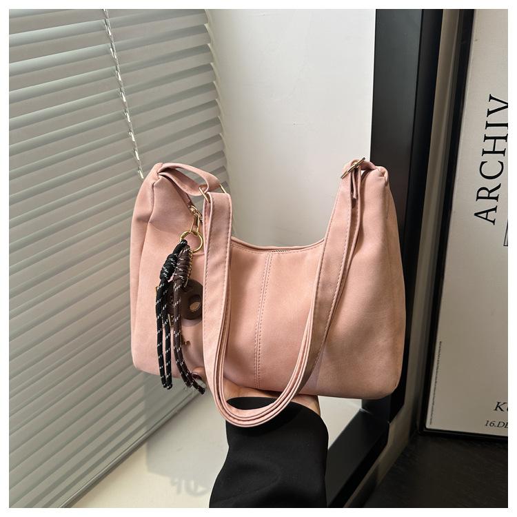 Ретро простая модная сумка-тоут большой вместимости женская новая нишевая простая повседневная сумка через плечо высококлассная сумка-мессенджер Without pendant розовый