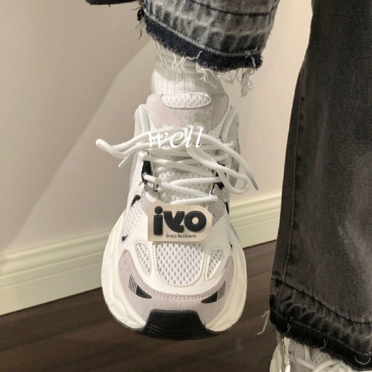 Ретро сетчатые дышащие легкие папины кроссовки для девочки осень нишевые универсальные повседневные кроссовки модная обувь модная девушка 40 белый
