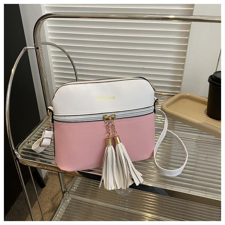 Ретро сращивание модная фактура сумка через плечо 2024 летняя дорожная корейская версия женская сумка для мобильного телефона женская сумка с бахромой розовый