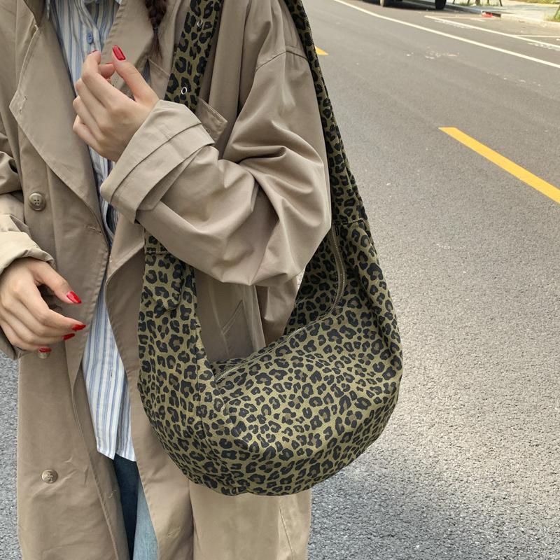 Ретро сумка женская 2025 новая популярная модная наплечная сумка с высоким чувством стиля простая большая вместимость сумка-пельмень для поездок цветной печати леопарда