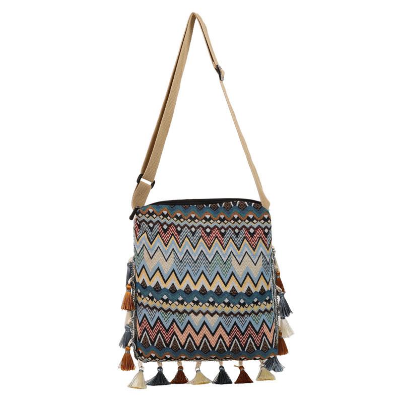Ретро сумка-мессенджер в зарубежном стиле женская 2025 весна новая этнический стиль с бахромой на плечо женская сумка большая вместимость сумка-тоут светло-синий