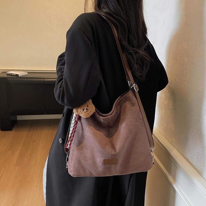 Ретро сумка-тоут для поездок на работу женская большой вместимости 2025 новая мода корейская версия на плечо сумка-мессенджер многофункциональный рюкзак темно-коричневого