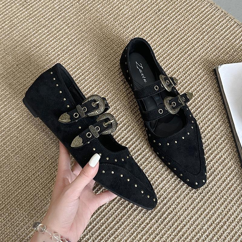 Ретро туфли Мэри Джейн с острым носком и мелким вырезом, женские, осень 2025, новые, с заклепками и ремешком, популярные туфли на плоской подошве 40 цветной печати леопарда