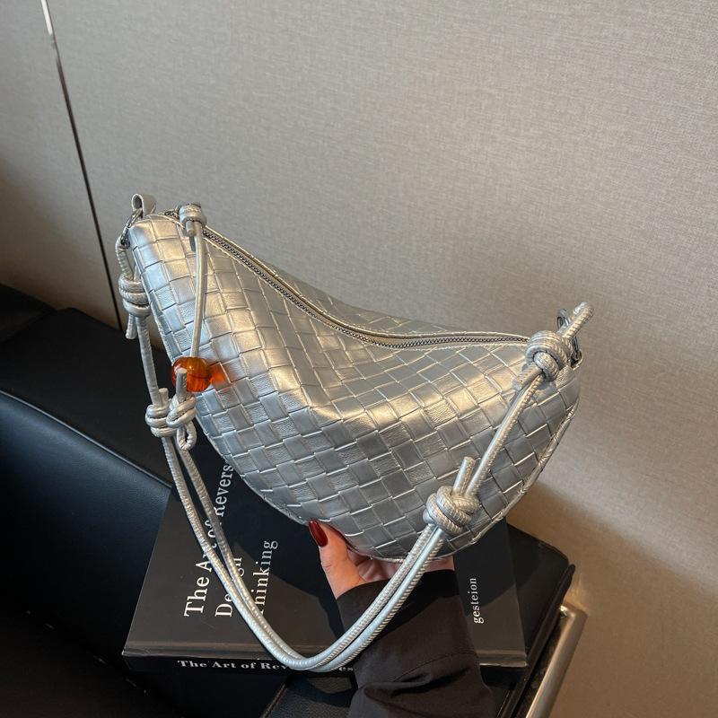 Ретро универсальная сумка подмышкой женская нишевая плетеная сумка-седло модная повседневная сумка-мессенджер серебряный