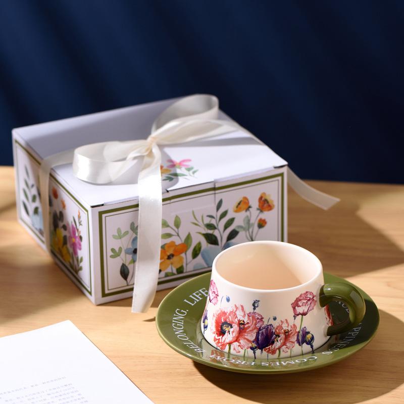 Ретро французская креативная чашка и блюдце для свежих цветов, керамическая чашка, офисная кофейная чашка и блюдце, нишевая, высококлассная, легкая роскошь 300-400ml
