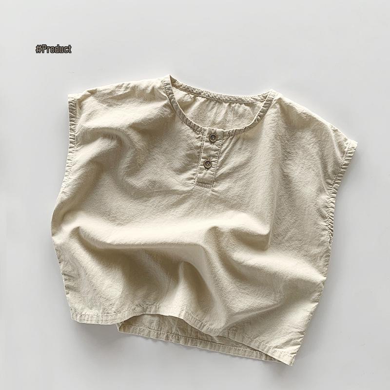 Ретро хлопковая футболка-жилет в стиле Мори для детей - Дышащая летняя мода для мальчиков и девочек 120 cm