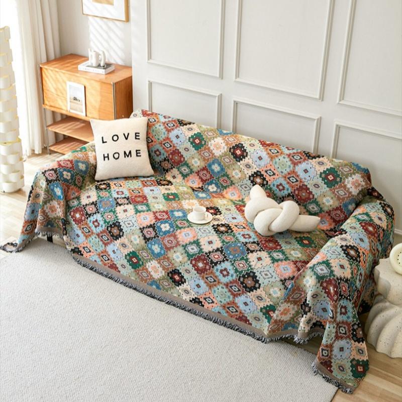 Ретро хлопковое льняное полотенце для дивана с защитой от царапин от кошек, всесезонные универсальные чехлы для дивана для гостиной в стиле бохо, чехол для дивана для дома 130x180cm