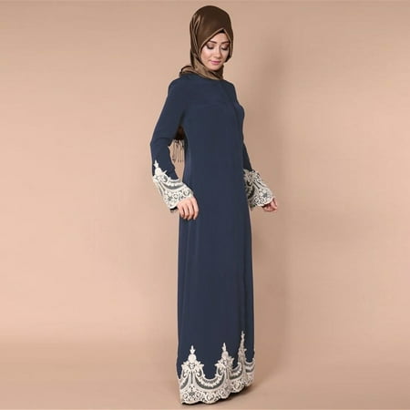 Middle Eastern Turkish Fashion Full Buckle Muslim Lace Robes Muslim Long Dress