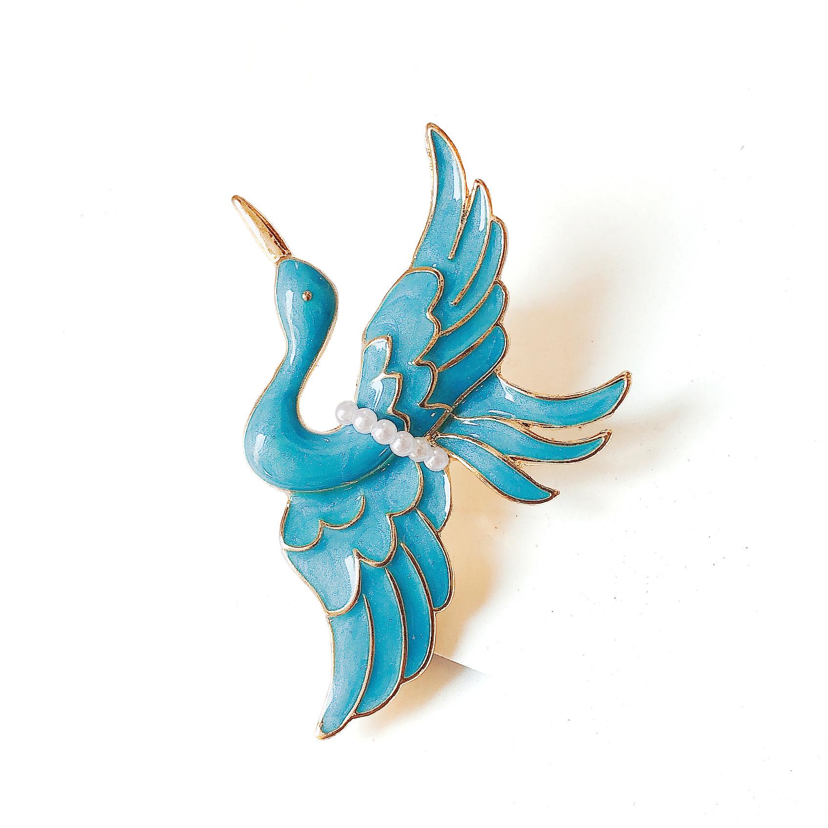 Ретро эмалевая брошь с журавлем: Корсаж «Неразлучники» в стиле корт с перламутровым эффектом