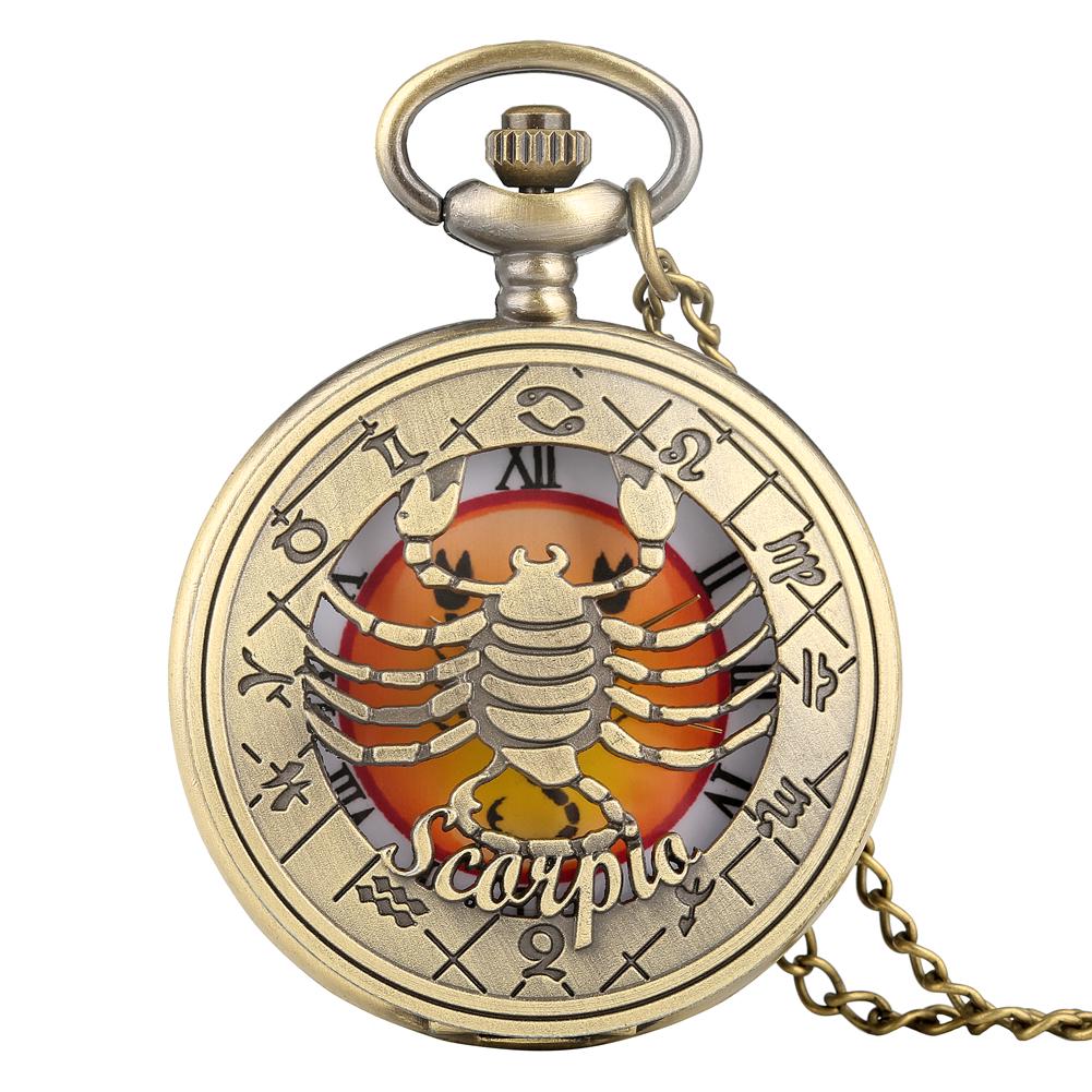 Ретро 12 Созвездие карманные часы с полой крышкой ожерелье кварцевые часы с подвеской коллекция подарок Scorpio бронзовый