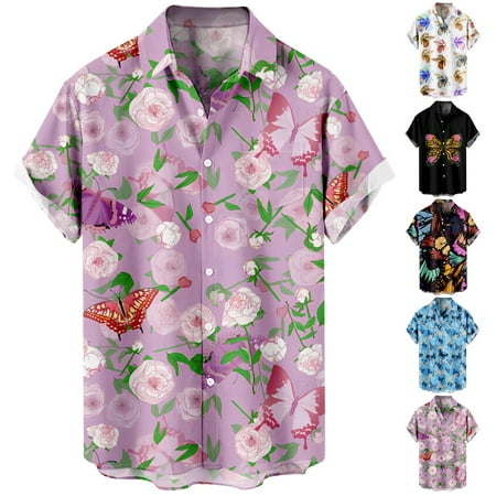 Youth Adult Casual Short Sleeve T-Shirts Lapel Print Party Clothes For Men Boys