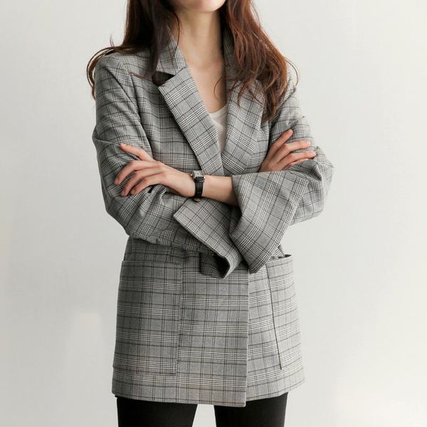 u-swear plaid blazer jacket fashion bow sashes split sleeve femme elegant office ladies blazers for women with belt feminino women's su, White;black